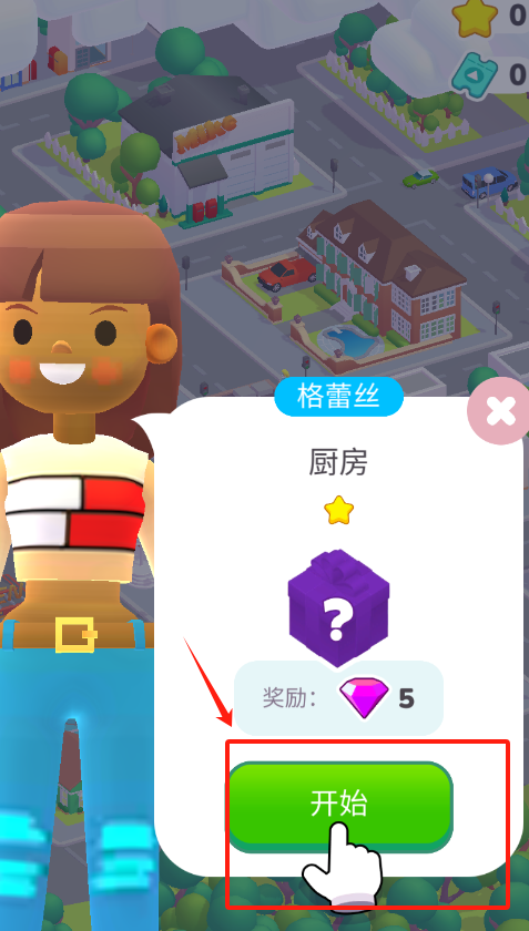 1、進入界面,找到角色對應的任務彈窗,點擊開始按鍵,跳轉至任務場景,準備開展房間相關操作。