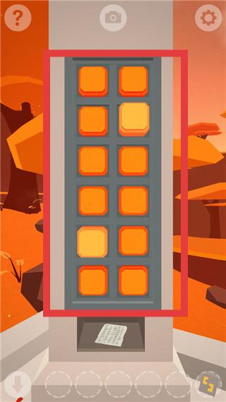 1、進入遙遠尋蹤4古跡逃脫場景,在橙色荒漠關卡,發現帶發光方塊的裝置,拾取下方密碼紙,觀察方塊亮滅規律,按規律點擊方塊,解鎖裝置。