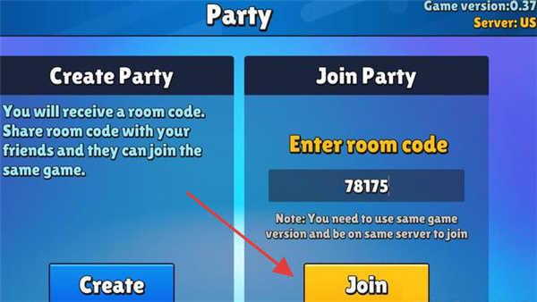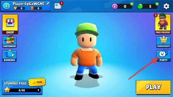 1、點擊右側PARTY進入多人模式,可以創建房間,也可以輸入好友的房間代碼加入房間。
