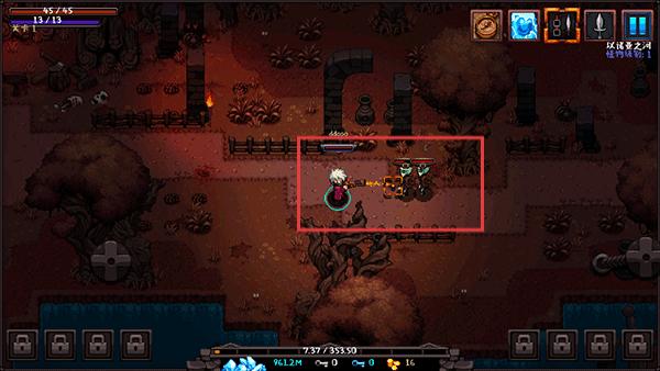 2、進入游戲場景,操控角色移動,遇敵人時,點擊技能、攻擊按鍵,釋放招式,擊敗怪物,推進關卡。