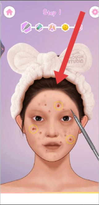 2、氣泡內容表示人物的要求,按照需求來給她化妝,根據頂部指引完成面部清潔步驟。