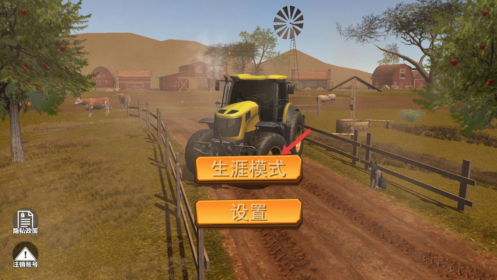 1、點擊【生涯模式】,開啟農場生涯之旅,可體驗從基礎到進階的農場經營與農機操作等豐富內容。