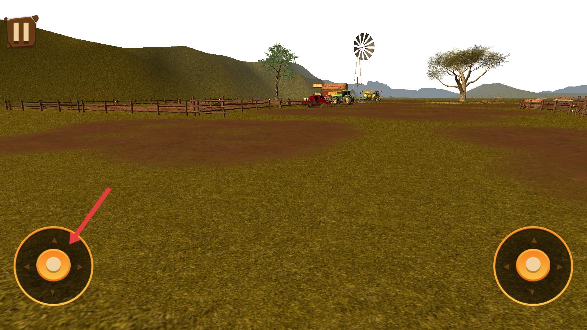 4、通過左側圓形操控盤,可控制人物移動方向,在農場場景中自由探索,完成各類農場相關任務與互動。