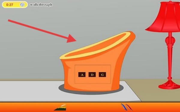 2、玩家需要查看橙色椅子,記住A、D、G字母,回到客廳,用收集的道具,關聯場景元素解謎。