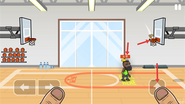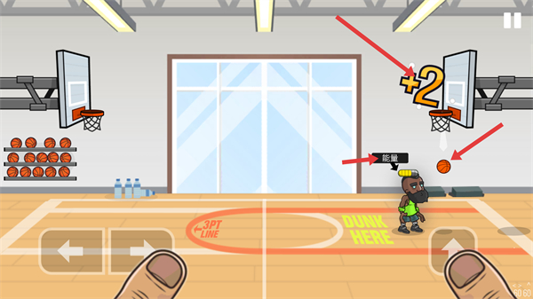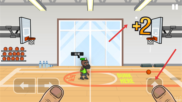 2、成功投籃后,會獲得分數獎勵,此時可繼續操控角色,準備進行下一次投籃,爭取更多得分。