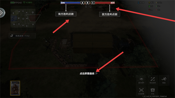 2、可查看我方和敵方勝利點數,了解雙方戰斗局勢,點擊屏幕繼續游戲,推進戰斗進程。