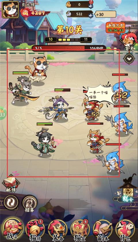 1、陣容組建:收集不同勢力的貓將英雄,根據它們的獨特屬性,搭配出屬于自己的陣容征戰四方。
