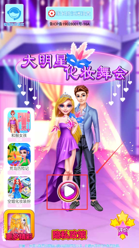大明星化妝舞會安卓版這游戲能讓小姑娘過足化妝癮!從洗臉護膚開始,到涂口紅畫眼影,各種化妝品隨便造。先給妹子做個美甲,再敷個面膜,然后就能化妝容了。眼影腮紅隨便搭,口紅顏色多得挑花眼。打扮完還能選禮服,項鏈耳環一樣不落。