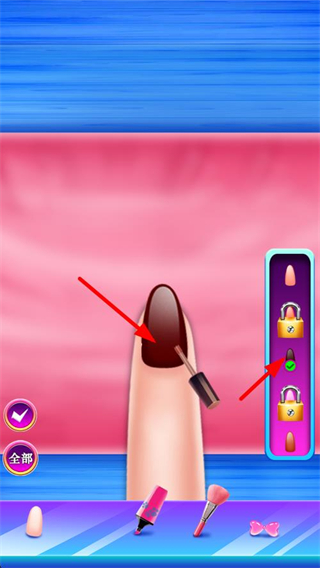 4、選擇美甲顏料,為指甲上色,完成美甲的裝飾步驟,收尾本輪美甲護理流程,結束該環節。