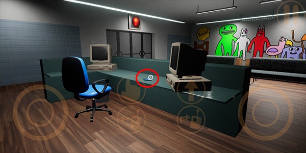 2、場景加載后,使用左側虛擬搖桿操控角色移動,右側按鈕執行互動,探索房間區域,尋找可交互物品。