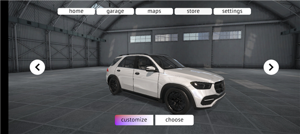 1、車輛選擇操作:進入游戲首頁點擊garage,通過左右鍵挑選心儀車輛開啟駕駛。
