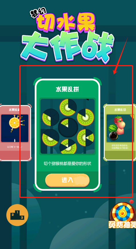 1、在游戲選擇界面,找到水果亂拼或水果亂切模式,點擊進入,準備開啟切水果挑戰。