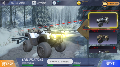 2、從多款ATV四輪車中挑選座駕,感受不同車型的操控特性。