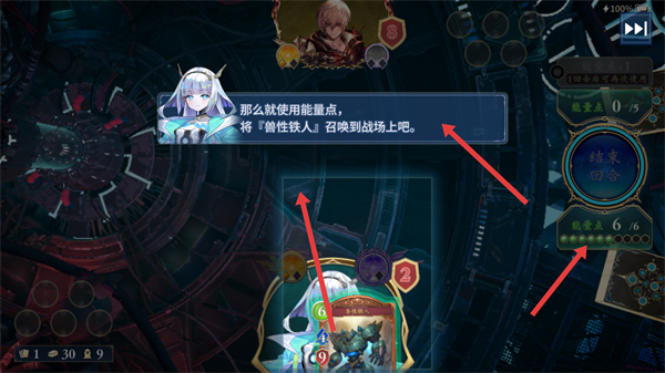 3、可使用能量點將隨從召喚到戰場上,如召喚嗜性鐵人,合理利用能量點,擴充己方隨從陣容,增強戰力。