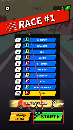 1、輕觸屏幕中央的啟動按鈕,即可進入充滿速度感的賽車世界。