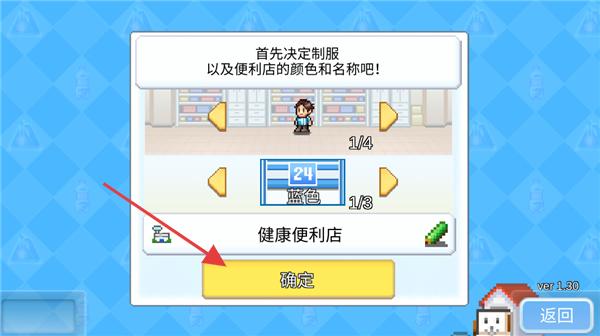 1、點擊開始游戲,進入定制界面,選制服顏色、名稱,點確定,開啟便利店經營之旅。