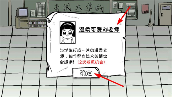 3、在考試前會顯示監考老師信息,了解老師規則后點擊確定按鈕,即可正式進入考試場景,開始游戲互動。
