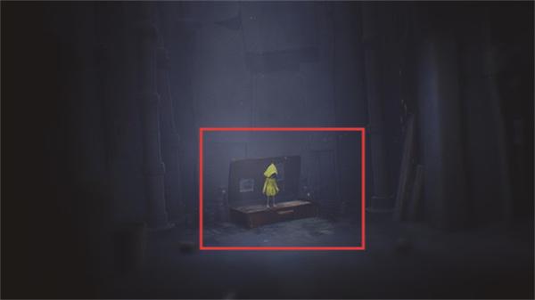 3、進入新場景,紅框內主角站立在舊箱子上,與箱子展開互動,開啟、搜尋,查找線索圖紙、密碼信息等,并將線索與前序場景關聯。