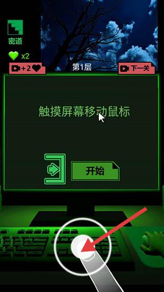 2、進入密道場景,界面布局還原老式電腦操作感,上方顯示密道標識,左上角呈現血量、道具等信息。