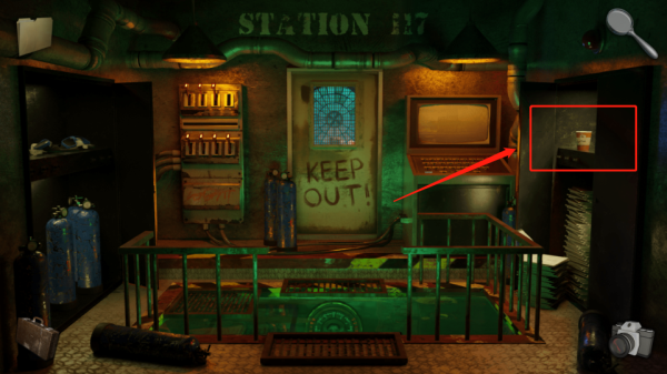 2、同時搜索場景內其他物品,如墻邊氣瓶、柜子里文件,留意KEEPOUT門及配電盤多開關布局位置,記錄環境線索。