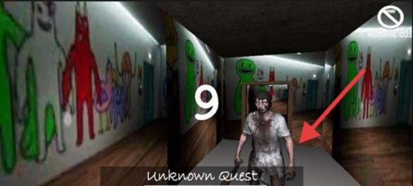 2、進入場景后,按箭頭指示,留意如unknown Quest中的神秘人物,保持警惕,探索走廊,收集線索,躲避危險。