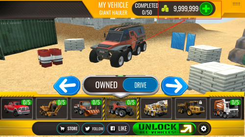 1、屏幕右上角實時顯示當前持有金幣數量,可用于解鎖新工程車輛或升級現有設備性能。