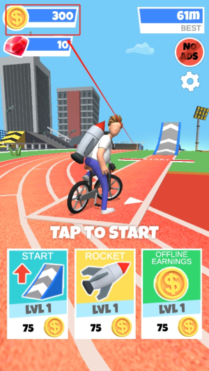 2、界面頂部實時顯示當前持有金幣數量,可用于解鎖新角色或升級自行車性能。