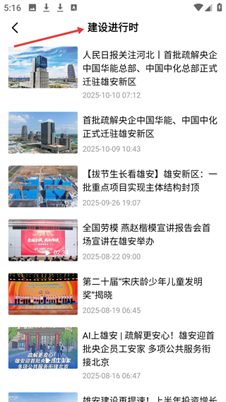 2、建設進行時頁面,發布首批疏解央企遷駐雄安等新聞,報道雄安新區重點項目建設、勞模宣講等近期發展動態。