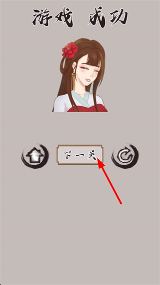 4、完成關卡所有互動后會顯示游戲成功界面,點擊下一關按鈕即可進入后續的關卡,繼續體驗游戲內容。
