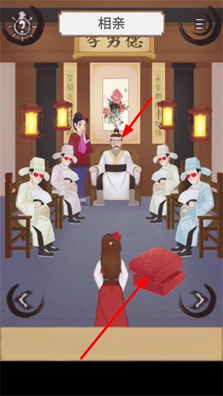 2、完成胭脂相關操作后,場景里會出現紅色胭脂,點擊該禮盒來觸發后續的互動,繼續推進相親關卡的進程。