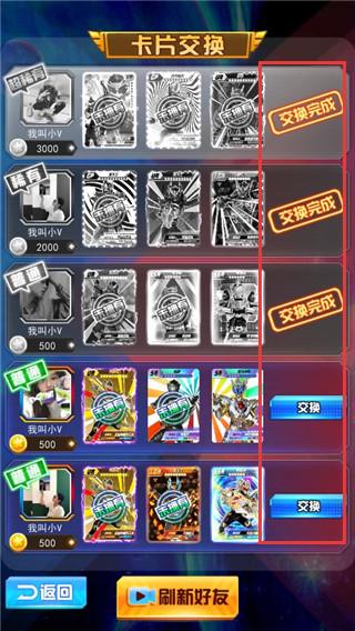 2、卡牌交換升級:與好友交換卡牌,查看好友心儀卡片,要求對方更換更稀有卡牌,不斷換取更稀有卡片,提升卡牌質量。