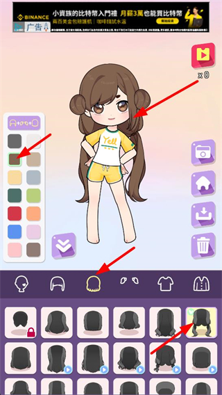 1、選擇發型裝扮選項,從左側顏色欄挑選喜歡的發色,再從下方發型樣式里選對應造型,應用到角色身上更換發型。