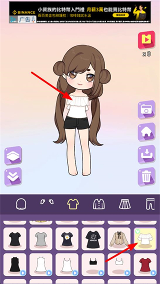 2、切換到上衣裝扮選項,挑選喜歡的款式,點擊對應上衣即可應用到角色身上,更換上身穿搭。