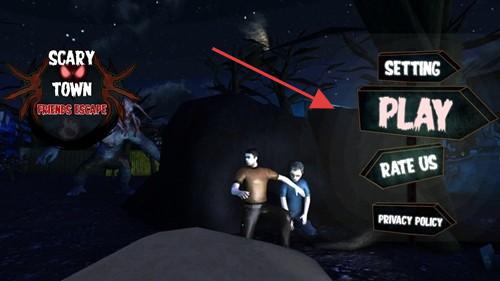 1、在游戲主界面,點擊【PLAY】進入游戲,體驗恐怖小鎮逃生之旅,可通過【SETTING】調整游戲設置。
