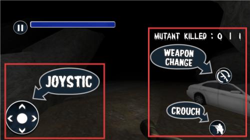 2、進入游戲場景,利用左側【JOYSTIC】虛擬搖桿控制角色移動,右側的【WEAPON CHANGE】切換武器,【CROUCH】進行蹲伏操作,躲避或攻擊敵人。