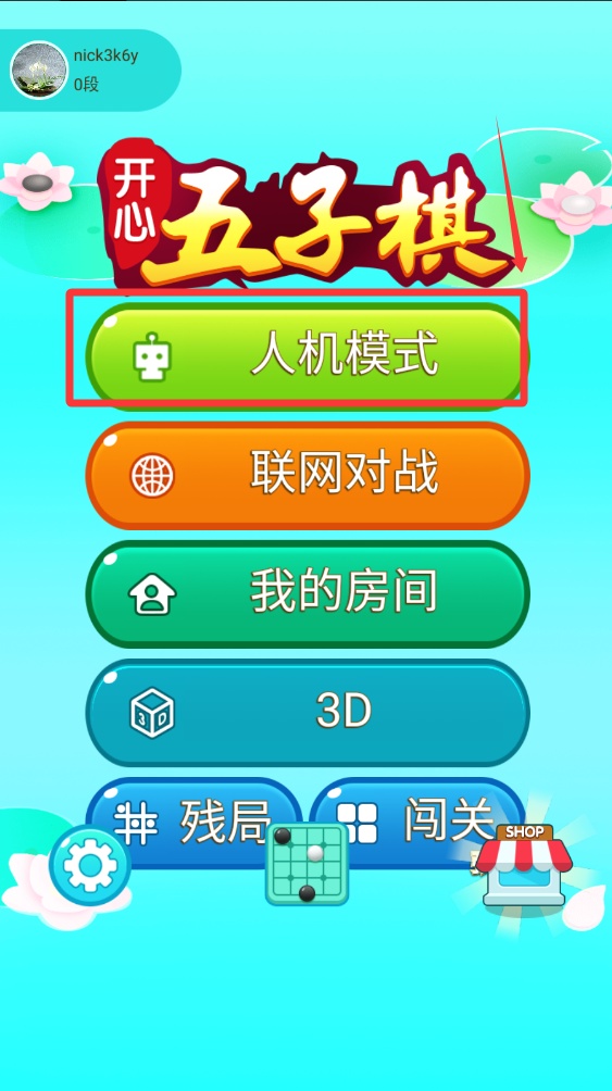 1、進入游戲模式選擇界面后,點擊"人機對戰"選項,系統將自動跳轉至難度設置頁面。
