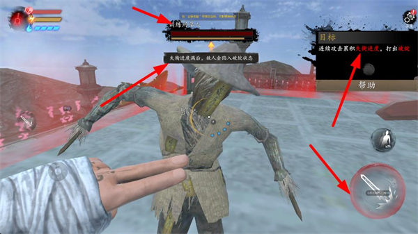 4、連續攻擊稻草人積累失衡進度,打出破綻,掌握連招和破綻攻擊的技巧,提升劍術戰斗的傷害和效率。