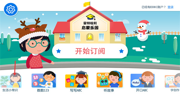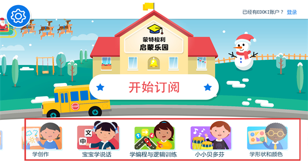 1、進入界面可看到開始訂閱按鈕,下方有學創作寶寶學說話等功能模塊,選擇對應模塊即可進入相關啟蒙內容的學習。