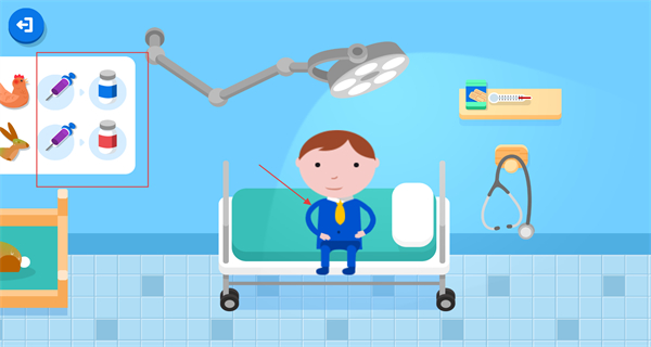 4、進入急診室內容界面后,可選擇對應醫療物品,與界面中的角色進行互動,完成相關生活常識的啟蒙操作。