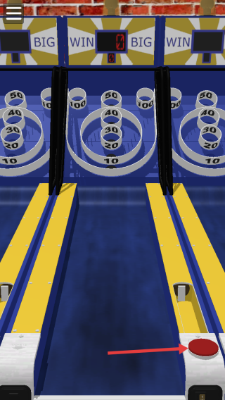 2、看到右邊那個大紅按鈕沒?點它就能把球彈出去,彈得越遠分數越高。