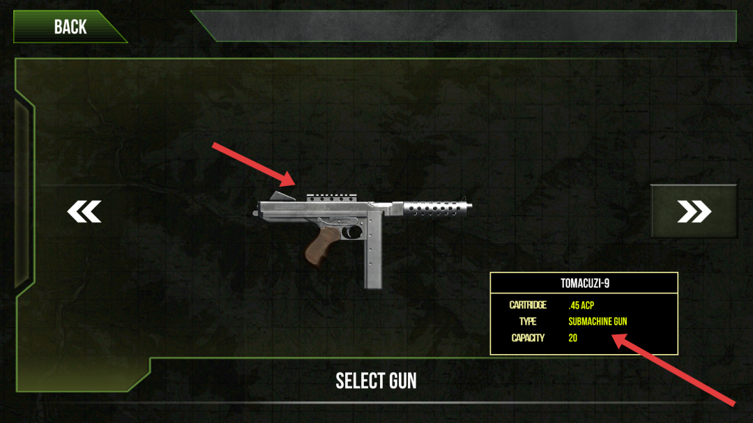 2、在選槍界面,查看TOMACUZI-9屬性,確認彈容、類型等信息,點擊槍支確認選擇,為后續射擊、改裝操作做準備。