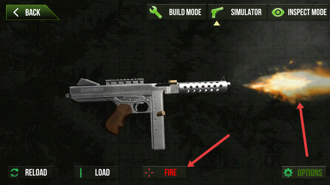 4、在射擊模式,先LOAD裝填,點擊FIRE射擊,觀察彈道與火焰效果,可切換模式,體驗組裝、檢視功能,熟練掌握槍械使用與改裝。