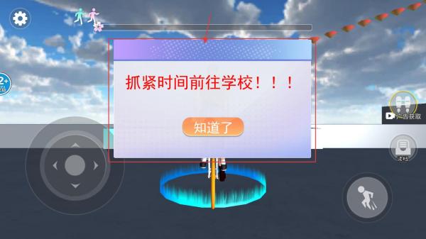 2、玩家需要點擊場景進入,進入后會觸發抓緊時間前往學校任務,點知道了開始騎行前往學校。