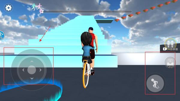 3、玩家需要用左側虛擬搖桿控制方向,右側按鈕控制人物動作,騎行時避開障礙,沿道路前往學校。