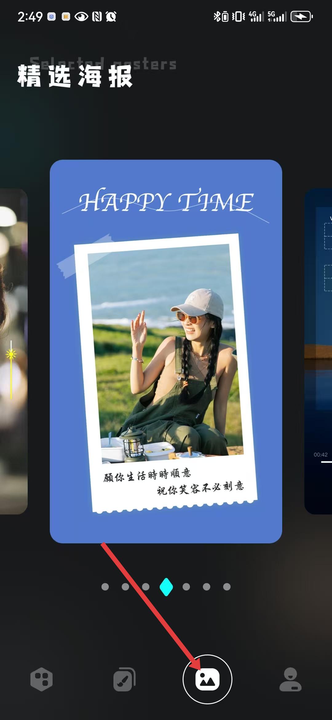 3、在完成基本的圖片編輯后,點擊底部中間位置的圖標進入精選海報板塊,選擇心儀的模板后,可將編輯好的圖片嵌入其中,快速生成具有專業感的海報作品。