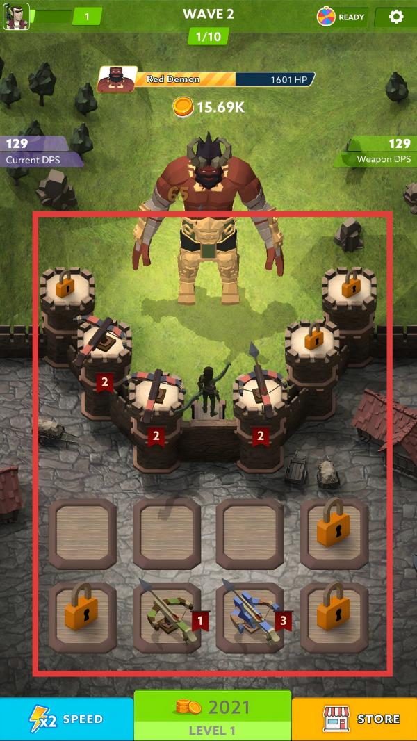 3、在每一波怪物來襲時,觀察怪物屬性,合理安排已放置的武器,依據武器等級和DPS數值,調整防御布局以應對怪物進攻。