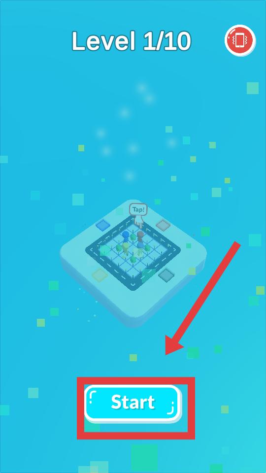 1、在初始界面點擊下方藍色Start按鈕,進入關卡一,界面會顯示彩色小人與Steps步數信息。