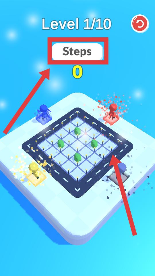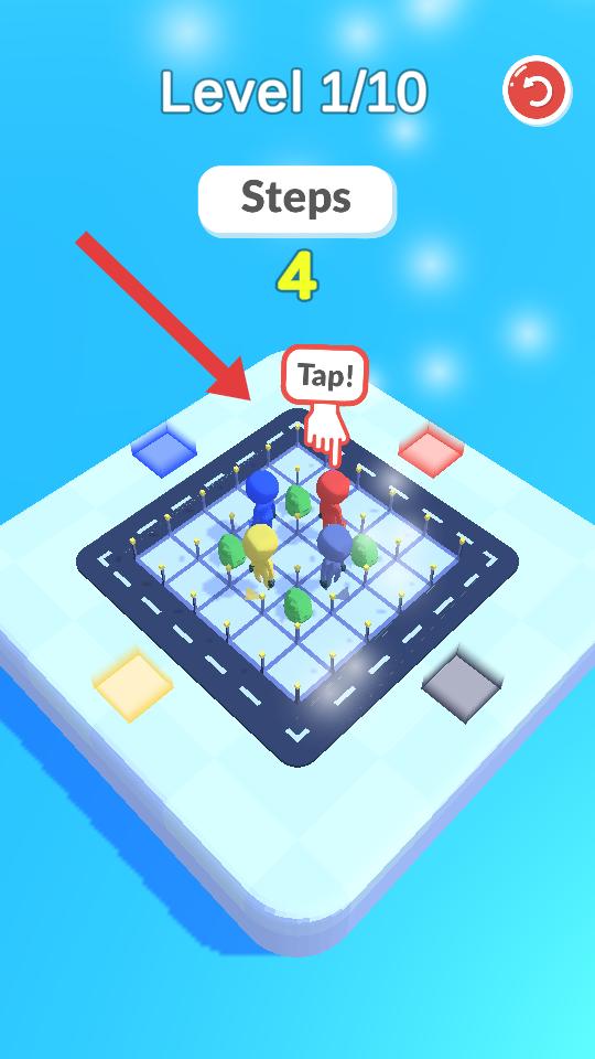 3、持續點擊操作直至Steps步數歸零,此時彩色小人抵達對應顏色區域,完成關卡一挑戰。