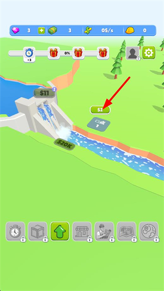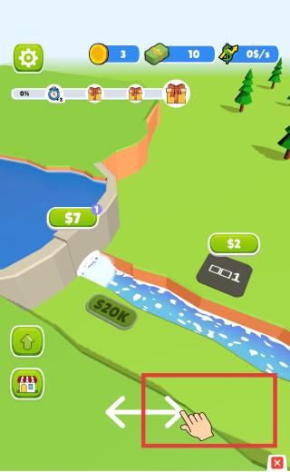 1、點擊對應區域解鎖水力設施,開始積累發電收益,推進電力經營的初始流程。