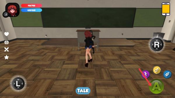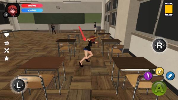 1、操控左下角L鍵移動角色,在教室場景中靈活走位,避開障礙或接近目標,為后續行動鋪好路徑。